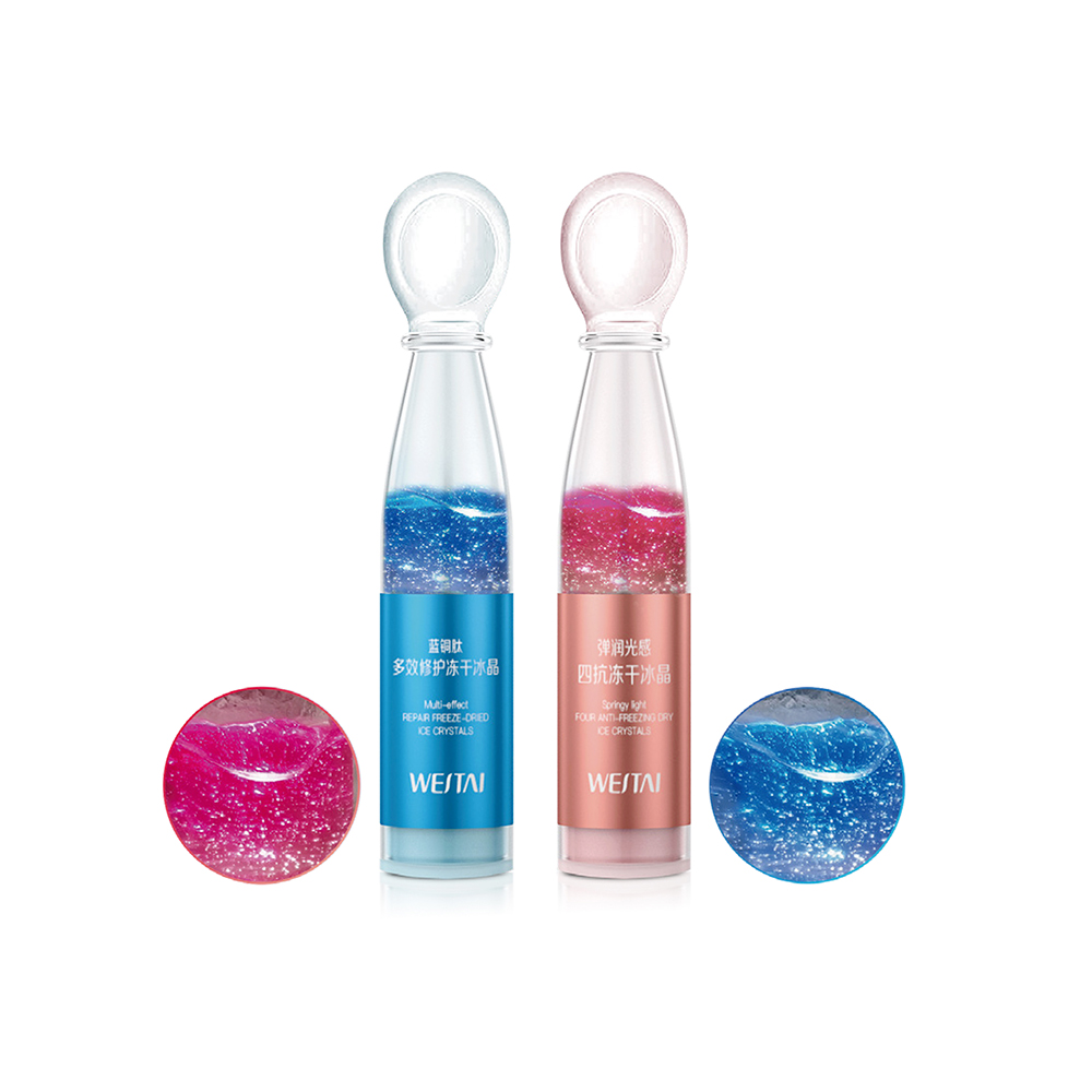 冻干粉与溶媒液混合后,形成透明冰晶状精华,质地轻盈易吸收,避免传统精华液的黏腻感。其独特的“触肤即融”特性,可快速渗透至基底层,提升成分利用率。