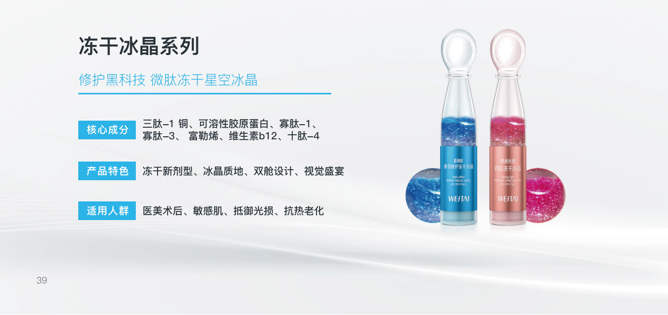 在成分党崛起与功效型护肤盛行的时代,微肽生物冻干冰晶系列以“科技+安全+高效”为核心,不仅为敏感肌、医美人群提供了专业解决方案,更通过冻干技术重新定义了护肤品的活性标准。未来,随着基因编辑与合成生物学的进一步融合,这一系列或将引领护肤行业迈向“定制化活性成分”的新阶段。