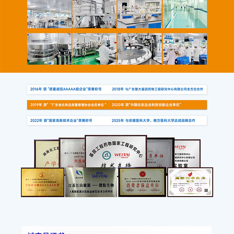 我们不止于生产,更致力于成为品牌的“成长加速器”。通过整合25年化妆品研发经验与全球供应链资源,微肽生物为合作伙伴提供“零门槛入局”解决方案:从原料溯源、功效背书到色彩能量学赋能,打造兼具科学性与情感价值的爆款产品;同时配备柔性生产线与快速响应机制,满足小批量试产到大规模量产的灵活需求。