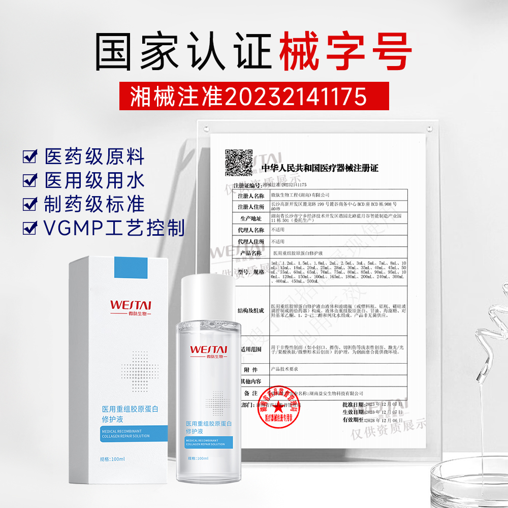 > 二类械字号医用重组胶原蛋白修护液 OEM